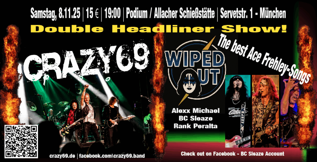 Show: 8.11.25 CRAZY69 & WIPED OUT in der Allacher Schiessstätte / Podium